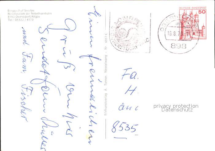 71908677 alte Postkarte Oberstdorf Berggasthof Seealpe Nebelhornbahn postalisch gelaufen Erhaltung siehe scans KatCode: 11110009780133