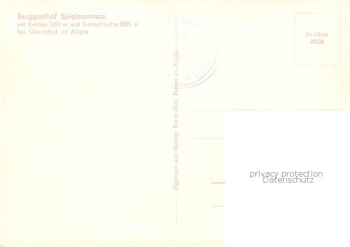 73800942 Oberstdorf Berggasthof Spielmannsau postalisch nicht gelaufen Erhaltung siehe scans [WerneD78] KatCode: 11110009780133