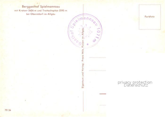72946831 Oberstdorf Berggasthof Spielmannsau Kratzer Trettachspitze postalisch nicht gelaufen Erhaltung siehe scans [KathaD81] KatCode: 11110009780133