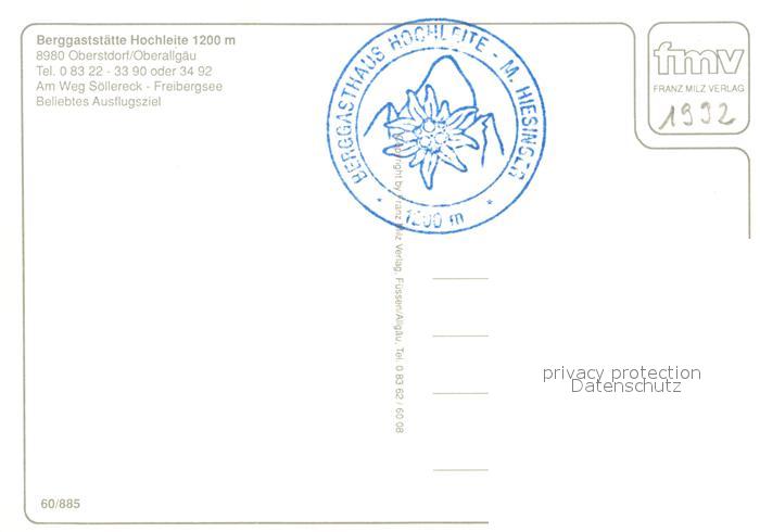 73039808 Oberstdorf Berggaststaette Hochleite postalisch nicht gelaufen Erhaltung siehe scans [WerneD78] KatCode: 11110009780133