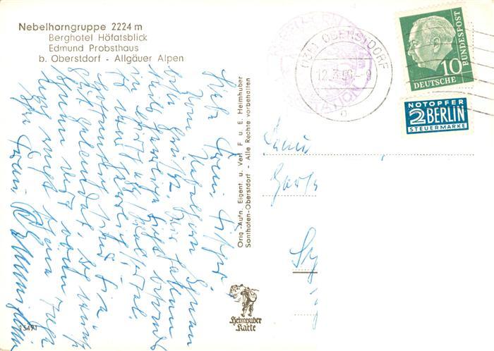 73892760 alte Postkarte Oberstdorf Berghotel Hoefatsblick Edmund Probsthaus postalisch gelaufen Erhaltung siehe scans [FriedD77] KatCode: 11110009780133