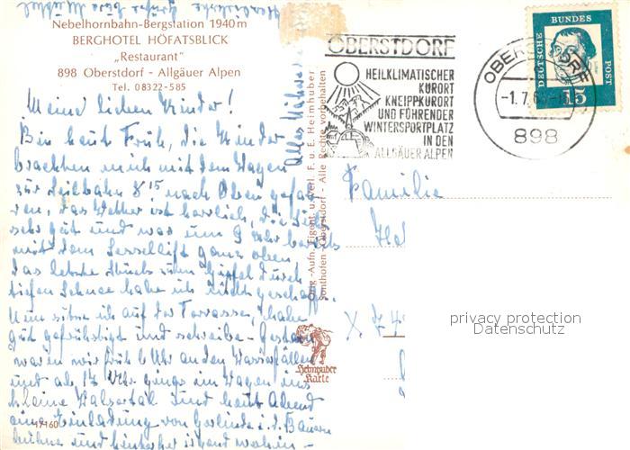 72929759 alte Postkarte Oberstdorf Berghotel Hofatsblick postalisch gelaufen Erhaltung siehe scans [KathaD81] KatCode: 11110009780133