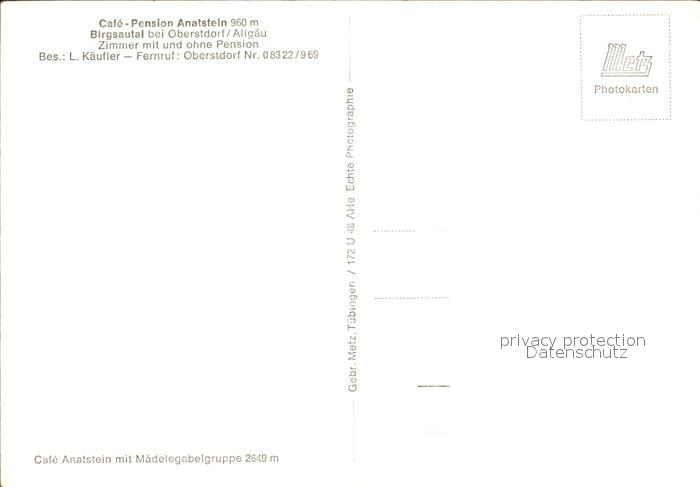 72465288 Oberstdorf Birgsautal Cafe Pension Anatstein postalisch nicht gelaufen Erhaltung siehe scans KatCode: 11110009780133