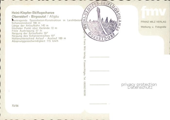 72578517 Oberstdorf Birgsautal Heini Klopfer Skiflugschanze postalisch nicht gelaufen Erhaltung siehe scans [LiesaD40] KatCode: 11110009780133