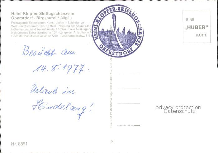 71907588 Oberstdorf Birgsautal Heini-Klopfer-Skiflugschanze postalisch nicht gelaufen Erhaltung siehe scans KatCode: 11110009780133