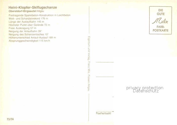 72717621 Oberstdorf Birgsautal Heini Klopfer Skiflugschanze postalisch nicht gelaufen Erhaltung siehe scans [LiesaD40] KatCode: 11110009780133