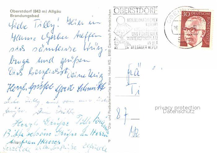 72917215 alte Postkarte Oberstdorf Brandungsbad postalisch gelaufen Erhaltung siehe scans [KathaD81] KatCode: 11110009780133