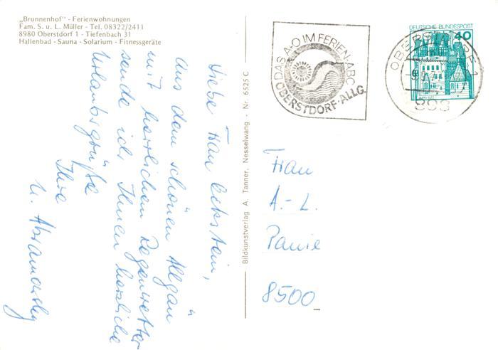 73884102 alte Postkarte Oberstdorf Brunnenhof Ferienwohnungen Teilansichten Hallenbad postalisch gelaufen Erhaltung siehe scans [FriedD77] KatCode: 11110009780133