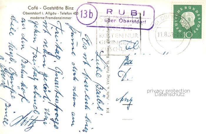 73801438 alte Postkarte Oberstdorf Cafe Gaststaette Binz postalisch gelaufen Erhaltung siehe scans [WerneD78] KatCode: 11110009780133