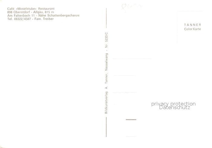 73870802 Oberstdorf Cafe Moselstube Restaurant Terrasse postalisch nicht gelaufen Erhaltung siehe scans [WerneD78] KatCode: 11110009780133