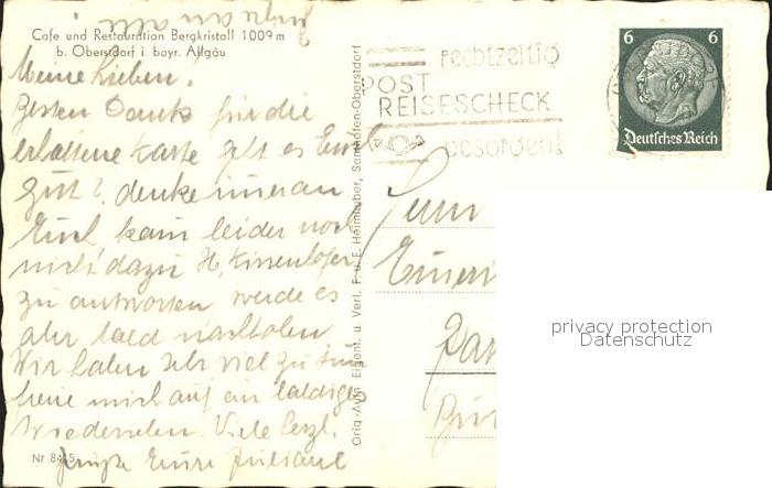 71837955 alte Postkarte Oberstdorf Cafe Restaurant Bergkristall postalisch gelaufen Erhaltung siehe scans KatCode: 11110009780133