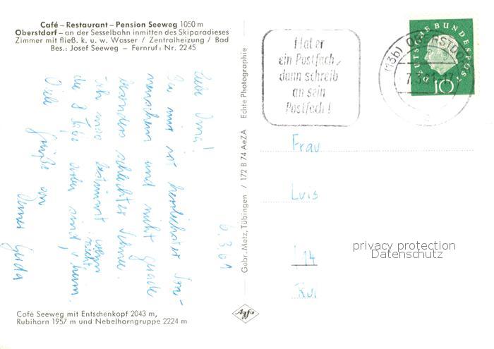 73828722 alte Postkarte Oberstdorf Cafe Restaurant Seeweg postalisch gelaufen Erhaltung siehe scans [WerneD78] KatCode: 11110009780133