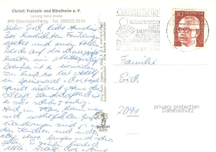 73686957 alte Postkarte Oberstdorf Christl. Freizeit- und Bibelheim e.V. Allgaeuer Alpen postalisch gelaufen Erhaltung siehe scans [FriedD77] KatCode: 11110009780133