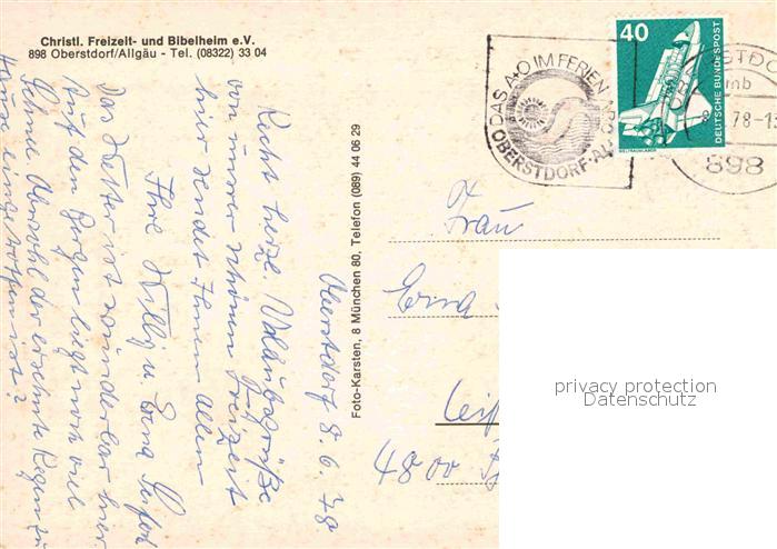 72859197 alte Postkarte Oberstdorf Christliches Freizeit- und Bibelheim postalisch gelaufen Erhaltung siehe scans [AndreD76] KatCode: 11110009780133