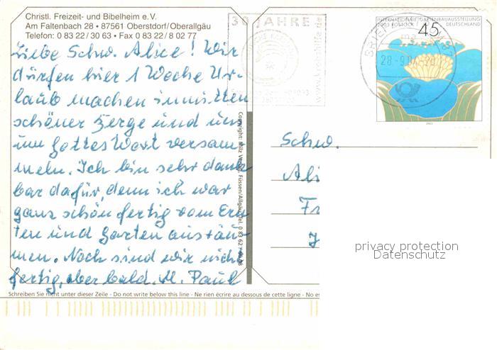 72619517 alte Postkarte Oberstdorf Christliches Freizeit und Bibelheim Bergbahn postalisch gelaufen Erhaltung siehe scans [FriedD77] KatCode: 11110009780133