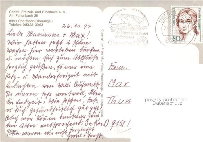 72958581 alte Postkarte Oberstdorf Christliches Freizeitheim postalisch gelaufen Erhaltung siehe scans [PaolaD17] KatCode: 11110009780133
