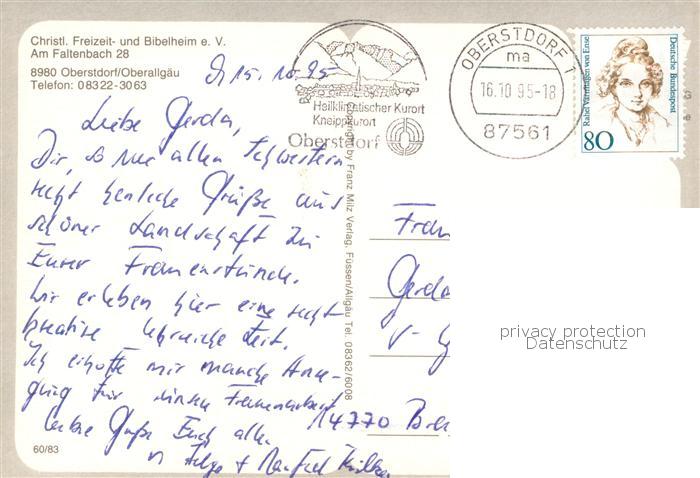 73779400 alte Postkarte Oberstdorf Christliches Freizeitheim Gastraeume Panorama postalisch gelaufen Erhaltung siehe scans [WerneD78] KatCode: 11110009780133