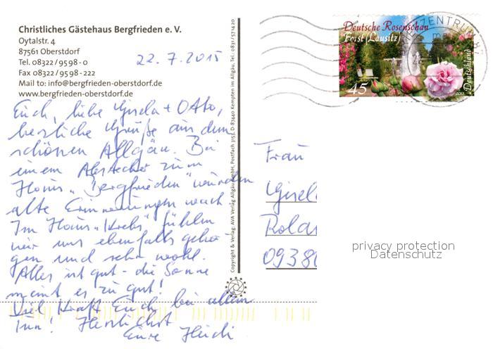 73071891 alte Postkarte Oberstdorf Christliches Gaestehaus Bergfrieden Alpen postalisch gelaufen Erhaltung siehe scans [FriedD77] KatCode: 11110009780133