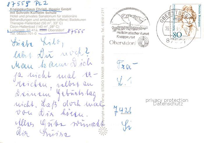 73065136 alte Postkarte Oberstdorf Christliches Hospiz Kneippkurhaus Winterpanorama Alpen postalisch gelaufen Erhaltung siehe scans [FriedD77] KatCode: 11110009780133