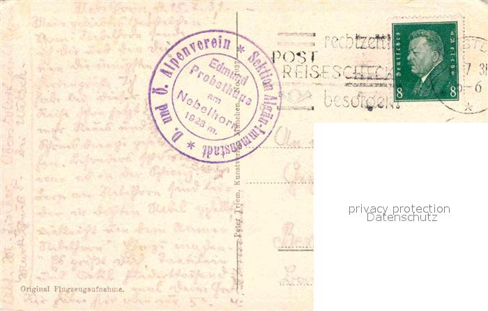 72822660 alte Postkarte Oberstdorf Daumen und Nebelhorn Gebirgspanorama Allgaeuer Alpen Fliegeraufnahme postalisch gelaufen Erhaltung siehe scans [FriedD77] KatCode: 11110009780133
