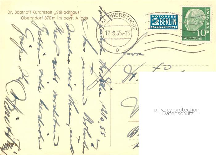 73131888 alte Postkarte Oberstdorf Dr Saathoff Kuranstalt Stillachhaus Allgaeuer Alpen postalisch gelaufen Erhaltung siehe scans [FriedD77] KatCode: 11110009780133