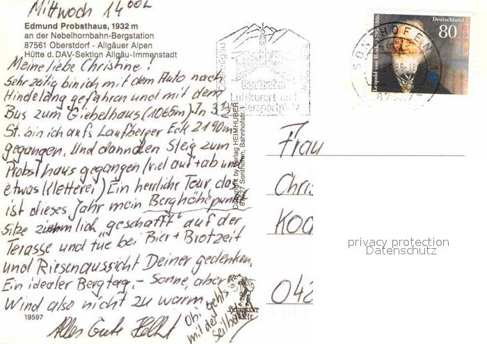 72725864 alte Postkarte Oberstdorf Edmund Probst Haus Nebelhorn Bergstation Nebelhorngipfel Hindelanger Klettersteig postalisch gelaufen Erhaltung siehe scans [WerneD78] KatCode: 11110009780133