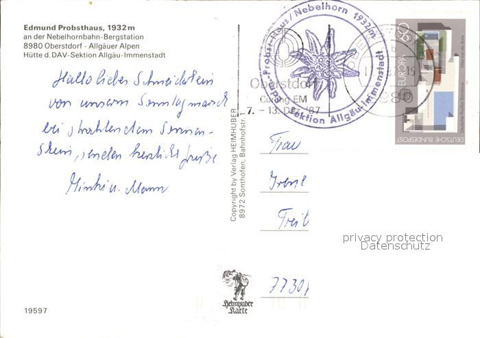 72442806 alte Postkarte Oberstdorf Edmund Probst Haus Nebelhornbahn Bergstation Probst Stueble postalisch gelaufen Erhaltung siehe scans KatCode: 11110009780133