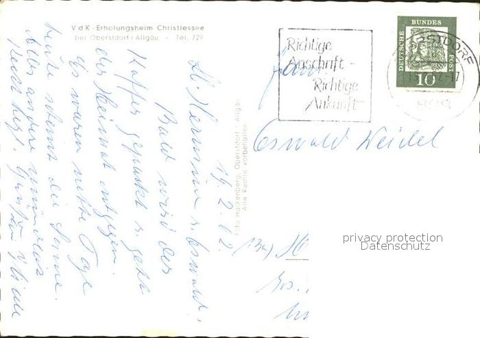 72104893 alte Postkarte Oberstdorf Erholungsheim Christiersee postalisch gelaufen Erhaltung siehe scans KatCode: 11110009780133