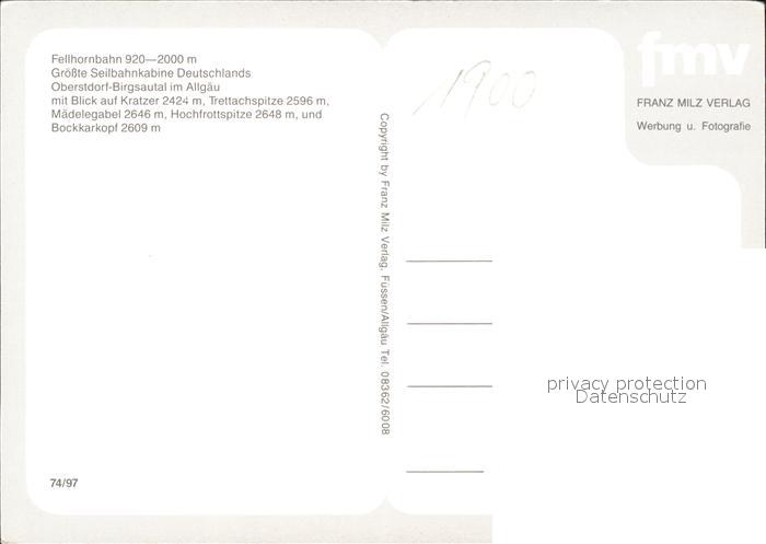 71901914 Oberstdorf Fellhornbahn postalisch nicht gelaufen Erhaltung siehe scans KatCode: 11110009780133