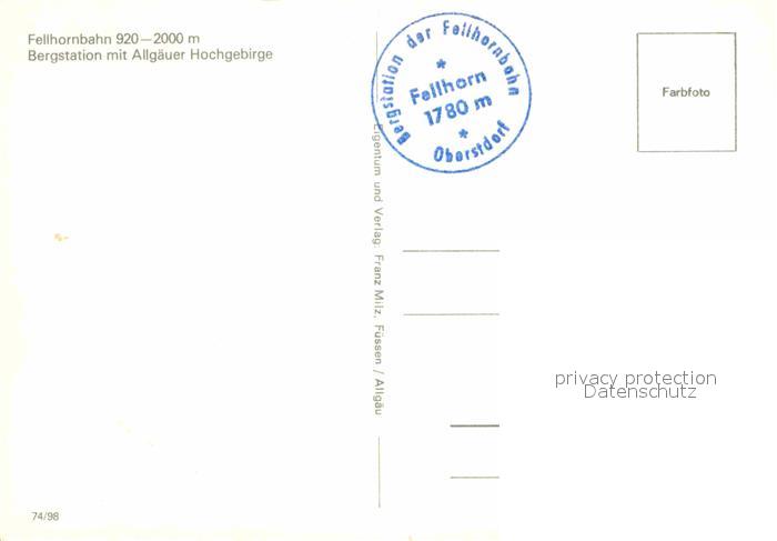 72837612 Oberstdorf Fellhornbahn Bergstation Allgaeuer Hochgebirge postalisch nicht gelaufen Erhaltung siehe scans [PaolaD17] KatCode: 11110009780133
