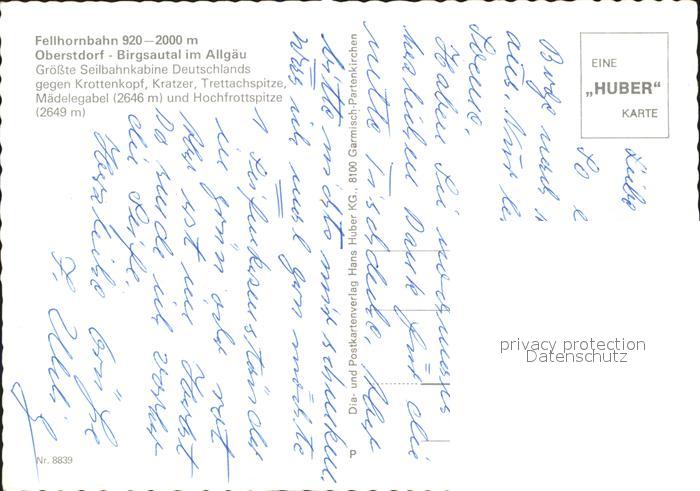 71909653 Oberstdorf Fellhornbahn Birgsautal Krottenkopf Kratzer Trettachspitze Maedelegabel Hochfrottspitze postalisch nicht gelaufen Erhaltung siehe scans KatCode: 11110009780133