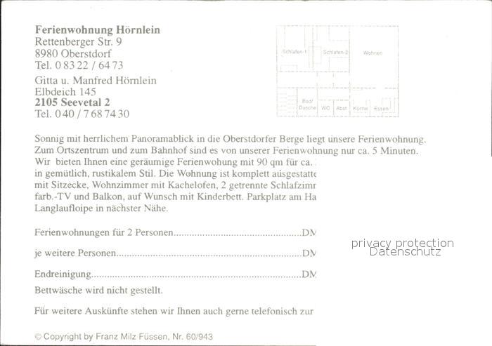 72286623 Oberstdorf Ferienwohnung Hoernlein postalisch nicht gelaufen Werbekarte (keine Postkarte) Erhaltung siehe scans Werbekarte (keine Postkarte) Matt Katcode 11110009780133