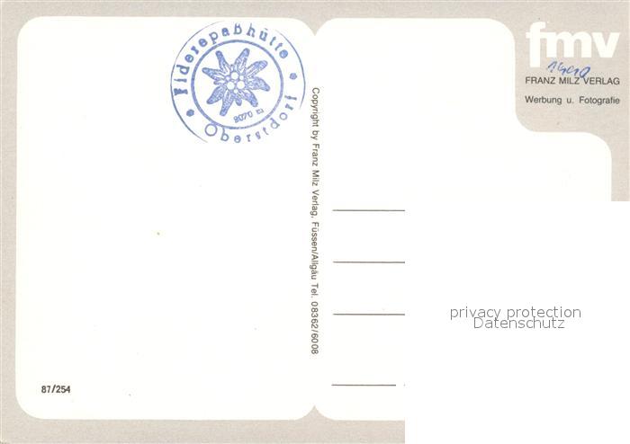 73108232 Oberstdorf Fiderepasshuette postalisch nicht gelaufen Erhaltung siehe scans [KathaD81] KatCode: 11110009780133