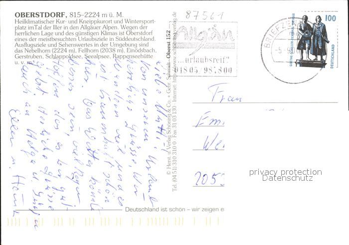 72464934 alte Postkarte Oberstdorf Fliegeraufnahme Nebelhorn Marktplatz postalisch gelaufen Erhaltung siehe scans KatCode: 11110009780133