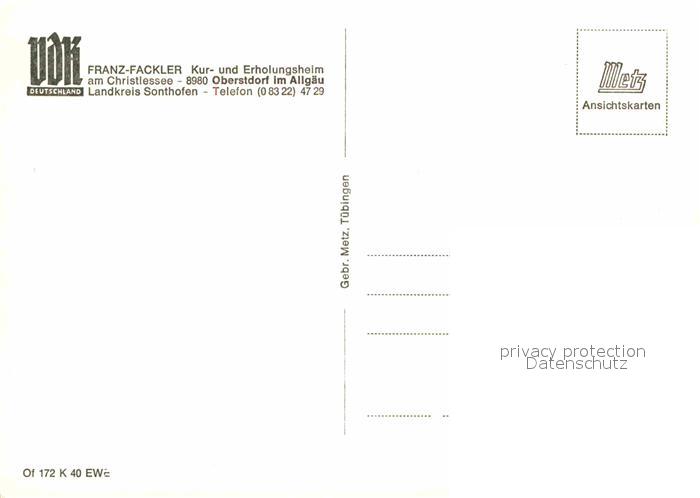 72707630 Oberstdorf Franz Fackler Kur und Erholungsheim am Christlesee Alpenblick postalisch nicht gelaufen Erhaltung siehe scans [FriedD77] KatCode: 11110009780133
