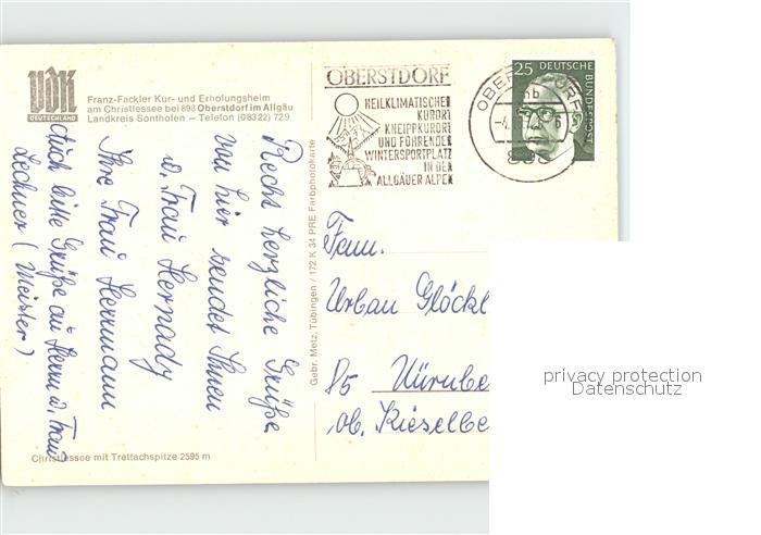 72300692 alte Postkarte Oberstdorf Franz Fackler Kurheim postalisch gelaufen Erhaltung siehe scans KatCode: 11110009780133