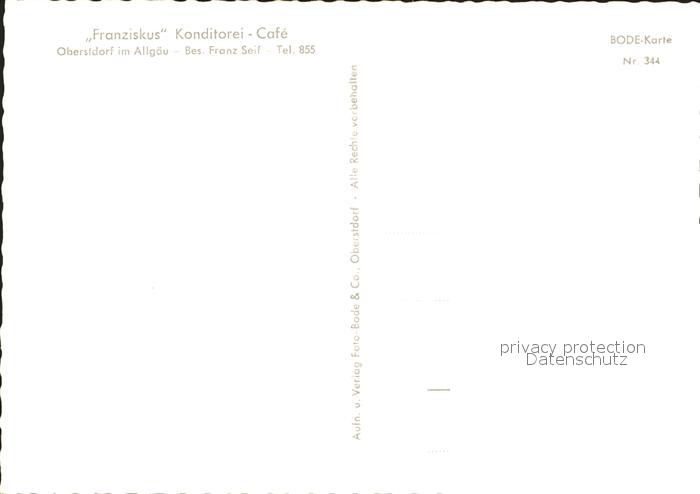 72104754 Oberstdorf Franziskus Konditorei Cafe postalisch nicht gelaufen Erhaltung siehe scans KatCode: 11110009780133