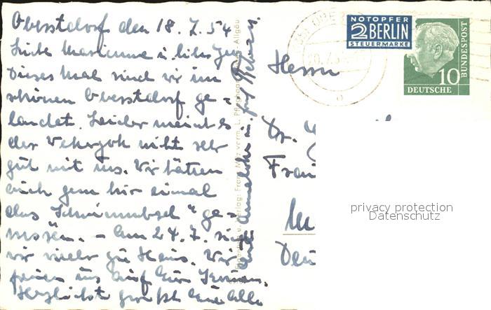 72523866 alte Postkarte Oberstdorf Freibad postalisch gelaufen Erhaltung siehe scans KatCode: 11110009780133