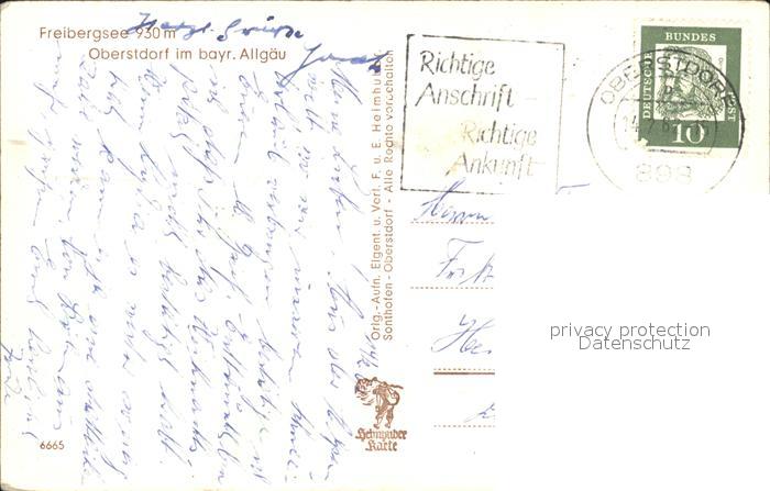 72405278 alte Postkarte Oberstdorf Freibergsee postalisch gelaufen Erhaltung siehe scans KatCode: 11110009780133