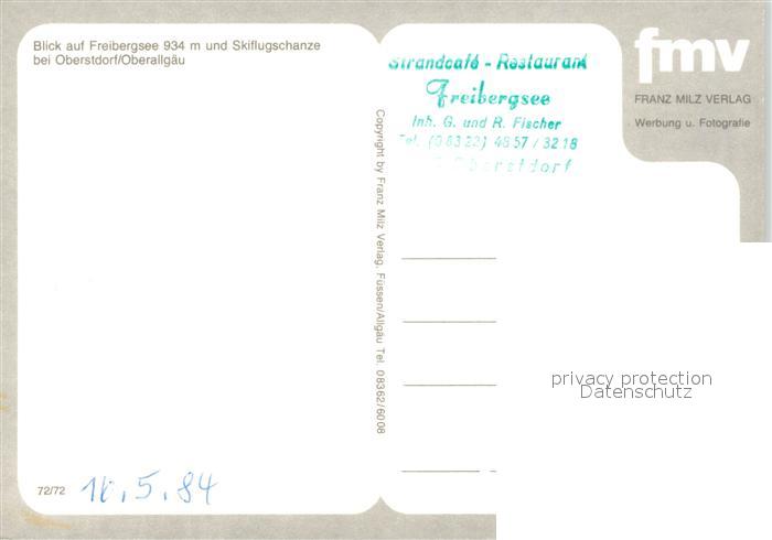 73181243 Oberstdorf Freibergsee Strandcafe Restaurant Terrasse Skiflugschanze Alpenpanorama postalisch nicht gelaufen Erhaltung siehe scans [FriedD77] KatCode: 11110009780133