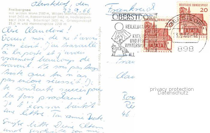 72771302 alte Postkarte Oberstdorf Freibergsee postalisch gelaufen Erhaltung siehe scans [AndreD76] KatCode: 11110009780133