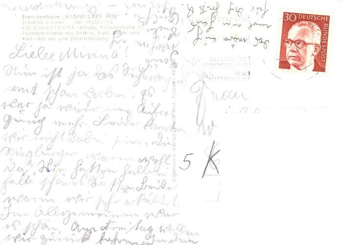 73892560 alte Postkarte Oberstdorf Fremdenheim Hanneslars HueS im Winter postalisch gelaufen Erhaltung siehe scans [FriedD77] KatCode: 11110009780133