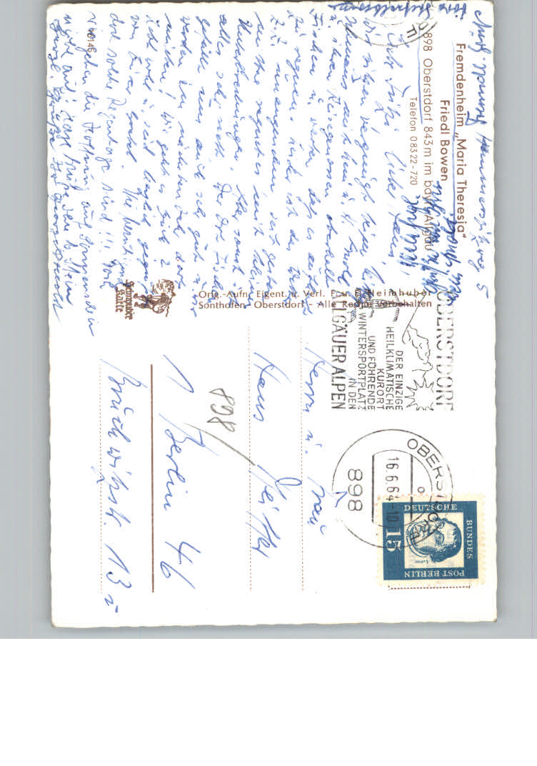 31172797 Oberstdorf Fremdenheim Maria Theresia postalisch nicht gelaufen KatCode: 11110009780133