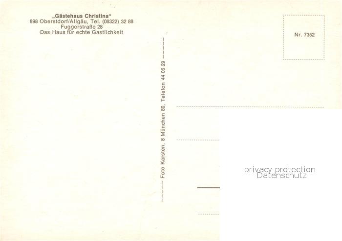 73059875 Oberstdorf Gaestehaus Christina postalisch nicht gelaufen Erhaltung siehe scans [NatalD47] KatCode: 11110009780133