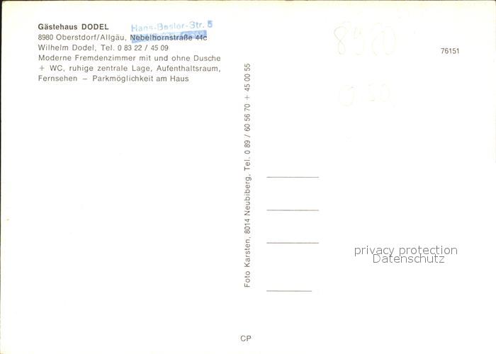 72421221 Oberstdorf Gaestehaus Dodel postalisch nicht gelaufen Erhaltung siehe scans KatCode: 11110009780133