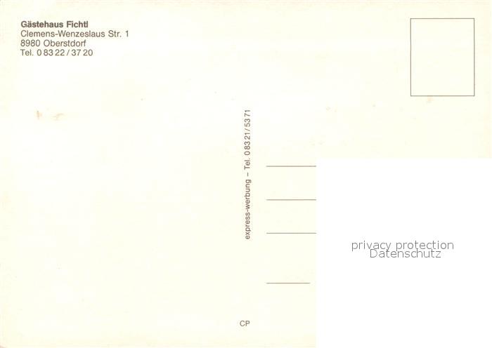 73062154 Oberstdorf Gaestehaus Fichtl postalisch nicht gelaufen Erhaltung siehe scans [NatalD47] KatCode: 11110009780133