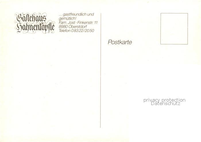 73080500 Oberstdorf Gaestehaus Hahnenkoepfle postalisch nicht gelaufen Erhaltung siehe scans [FriedD77] KatCode: 11110009780133