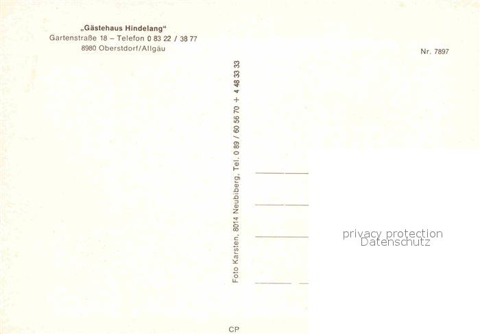 72838716 Oberstdorf Gaestehaus Hindelang postalisch nicht gelaufen Erhaltung siehe scans [AndreD76] KatCode: 11110009780133