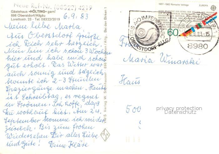73657088 alte Postkarte Oberstdorf Gaestehaus Hoelting Allgaeuer Alpen postalisch gelaufen Erhaltung siehe scans [FriedD77] KatCode: 11110009780133