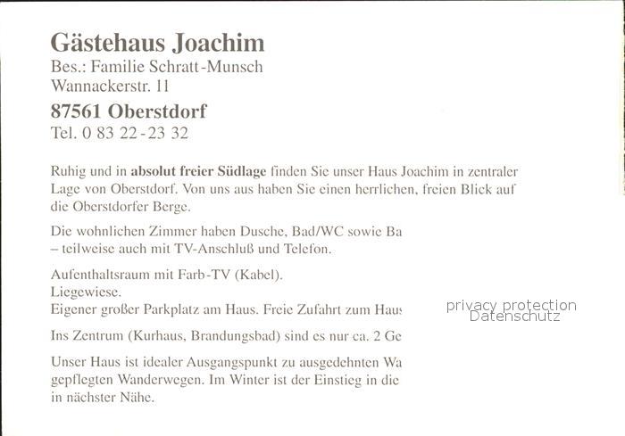 71831812 Oberstdorf Gaestehaus Jochim postalisch nicht gelaufen Keine Postkarte (siehe scan) Erhaltung siehe scans KatCode: 11110009780133